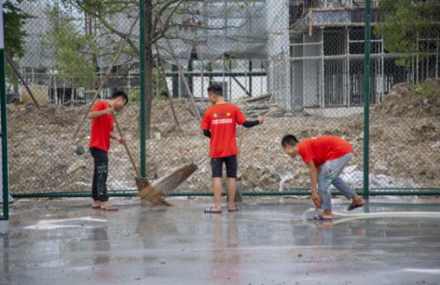 一条标准的400米塑胶跑道需要8-10个人的标准施工团队,在天气晴朗时的工作周期为20一30天。但实际工程中还需考虑其它零散部分的施工,以及可能因自然天气影响而耽误的时间。 并且塑胶跑道完成后,要在维护7天后投入使用。